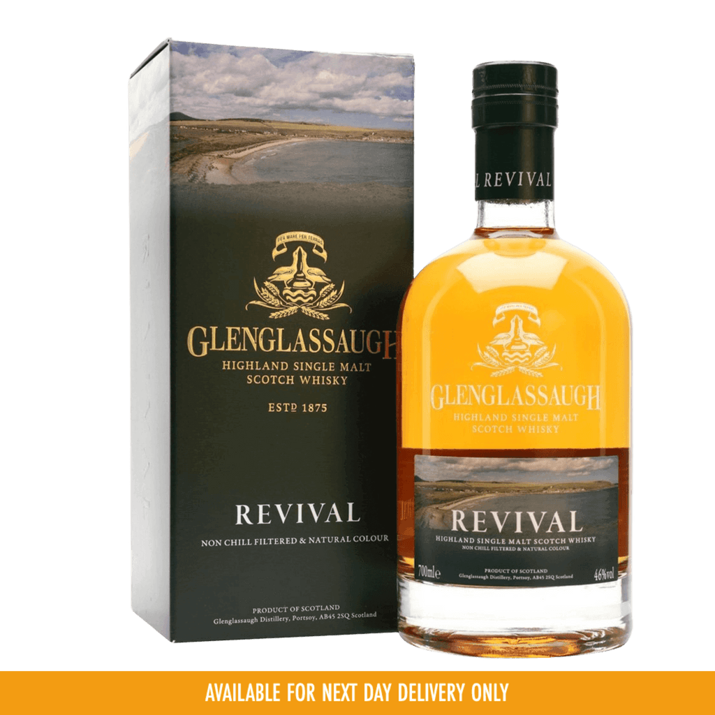 The Revival is the first expression released from Glenglassaugh distillery after being mothballed for more than 20 years. The Glenglassaugh Revival has been matured in a balanced mix of ex-red wine and fresh bourbon casks, vatted and re-racked for double maturation in rich sherry casks. Bottled at 46%, non chill filtered and of natural colour, Revival is a stunning Highland single malt with a coastal charm.