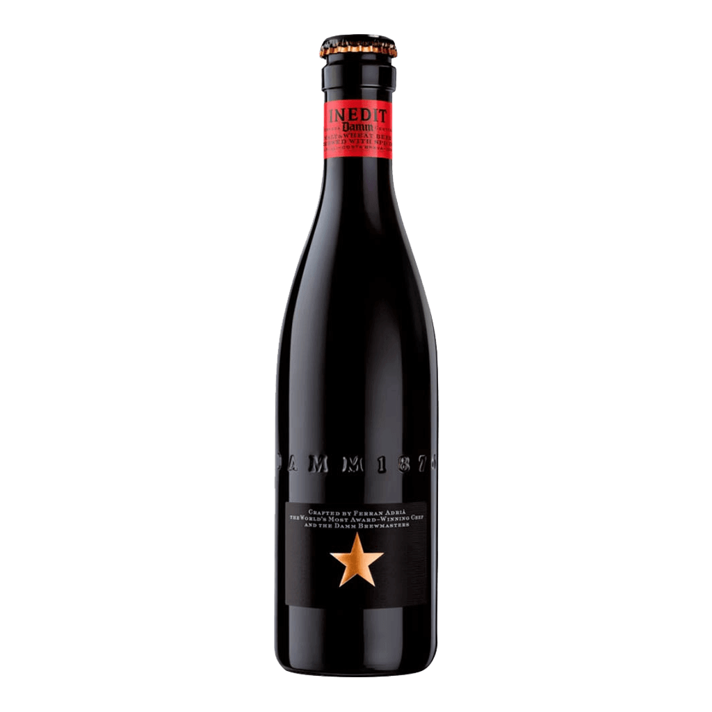 Inedit means "Never been done before". In cooperation witht the brewmasterd of Estrella Damm, Inedit was crafted by the globally acclaimed chef Ferran Andria, Juli Soler and sommeliers Ferran Centelles and David Seijas from ElBulli Restaurant.