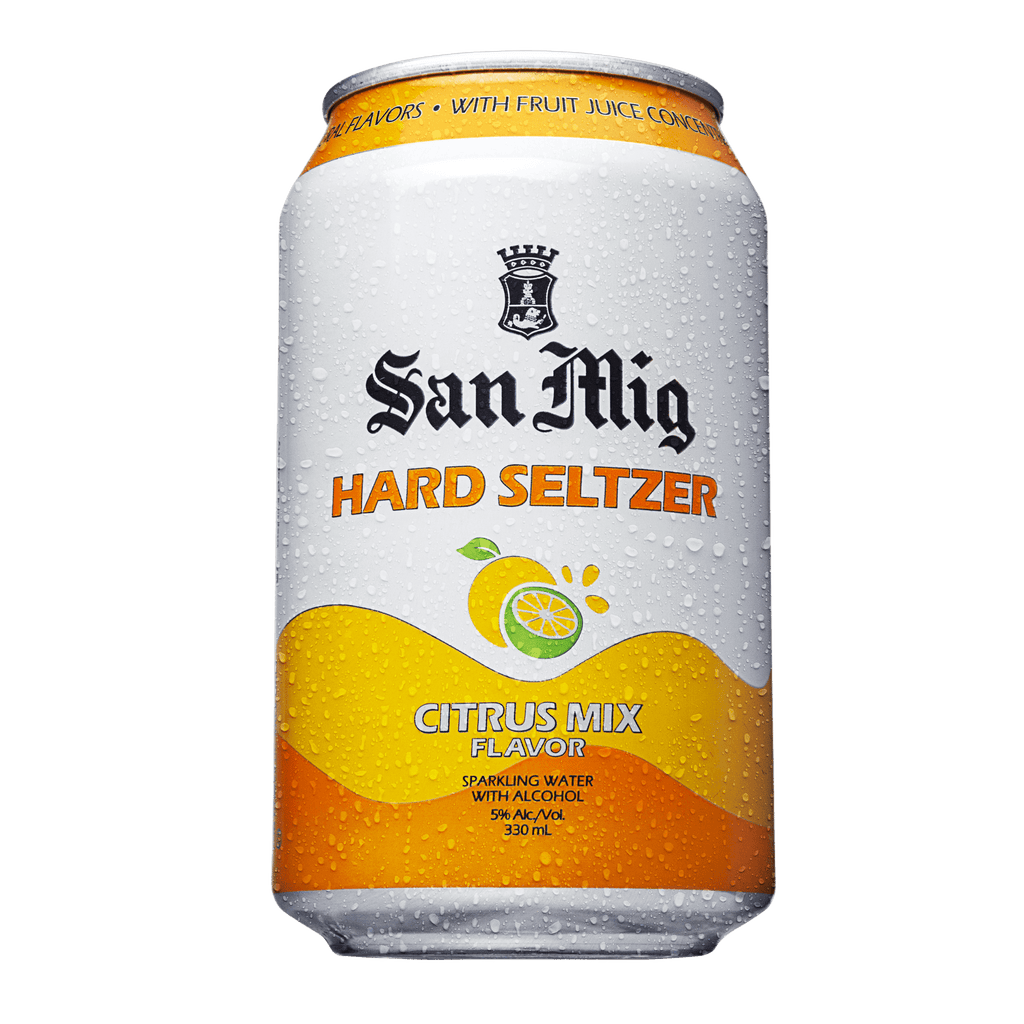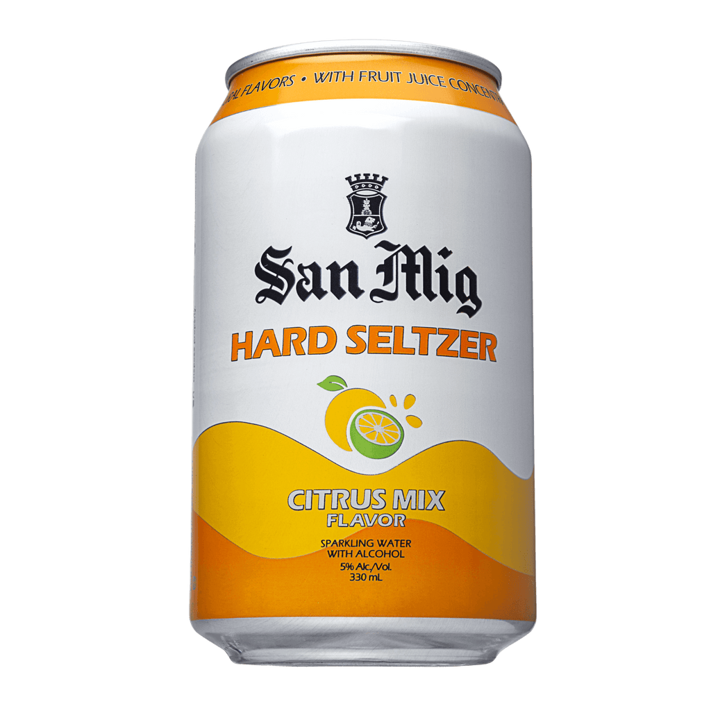 San Mig Hard Seltzer is a naturally fruit-flavored sparkling water with alcohol. It features pleasant and refreshing mixed citrus flavors with fruit juice concentrates, zero sugar, and no preservatives. Just the right sweetness without lingering bitterness makes it easy-to-drink.