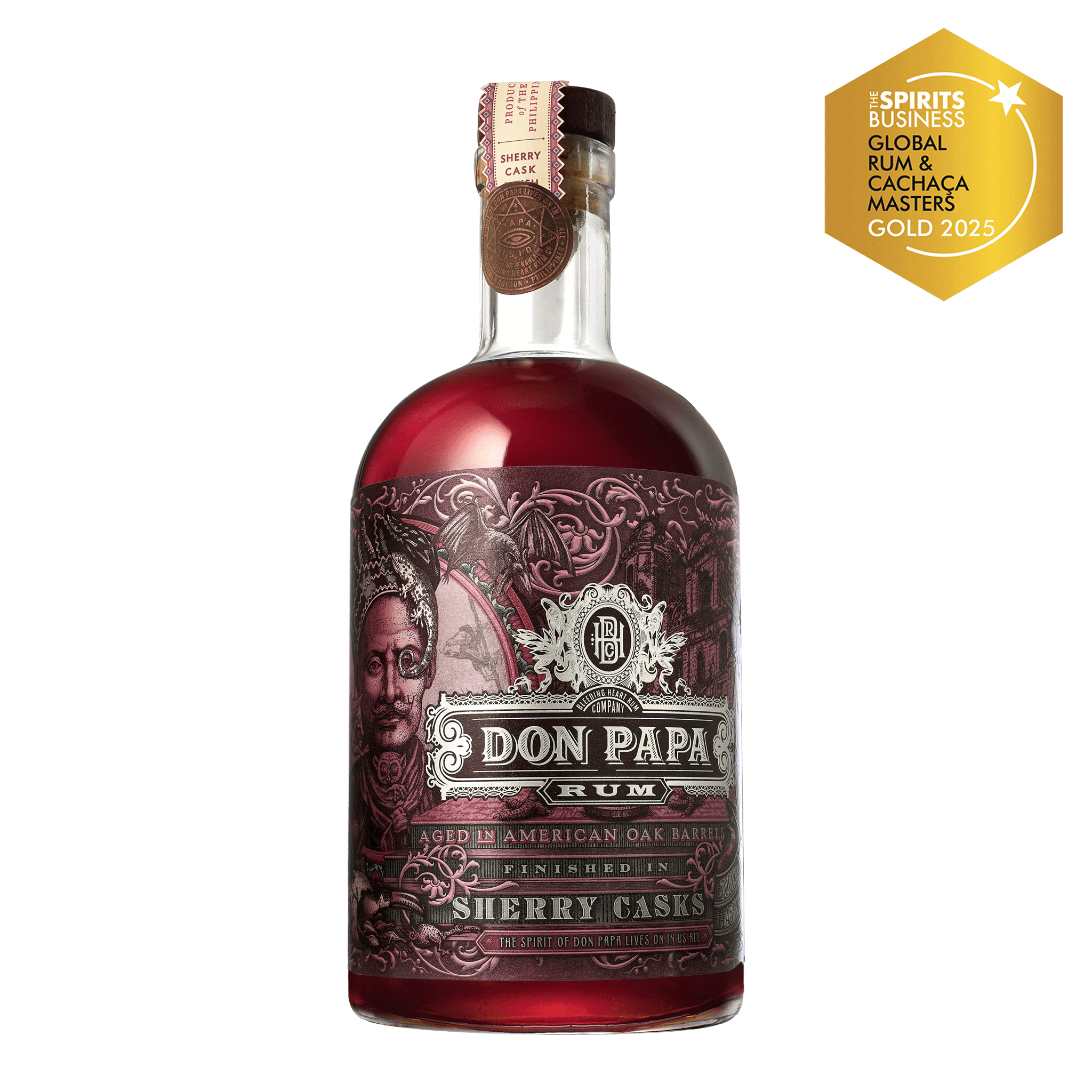 Don Papa Sherry Cask is a limited-edition blended rum, expertly finished in four different Sherry wine casks Fino, Palo Cortado, Pedro Ximénez, and Cream. Light amber with reddish hues, it offers a rich, fruity character and a velvety dry texture, perfect for sharing or adding to your private collection.